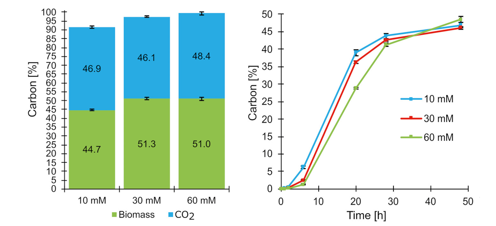 To verify the accuracy of the method, the team conducted initial experiments using glucose as the carbon source. Glucose is often applied as a reference material because its degradation products are well researched. Under ideal conditions, roughly half of the carbon should be released as CO₂, while the other half remains bound in biomass.